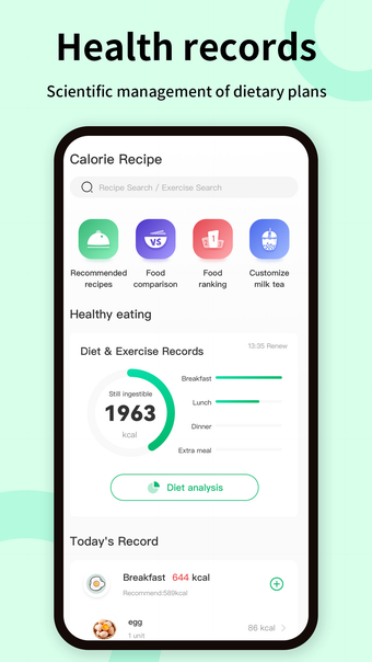 Kalori Takipçisi, diyet kayıtları, kalori sorgulamaları ve sağlık kayıtlarını birleştirerek kullanıcılara kalori hesaplama imkanı sunan bir uygulamadır. Özellikle zayıflama ve fitness hedefleri olan kullanıcılar için geliştirilmiştir. Günlük kalori alımını kaydedebilir, detaylı beslenme istatistikleri elde edebilir ve her öğünün kalori alımını bilimsel olarak takip edebilirsiniz.